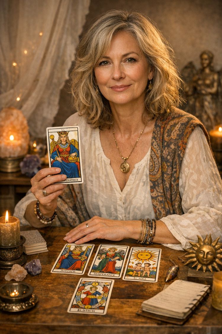 Dans une société où les femmes jonglent avec de multiples rôles — mère, partenaire, professionnelle, gestionnaire du quotidien — la Justice résonne particulièrement. Elle invite à questionner les déséquilibres : charge mentale, attentes sociales, perfectionnisme, culpabilité. Cette carte encourage à reprendre sa place, non pas celle que l’on attend de nous, mais celle qui nous correspond vraiment.